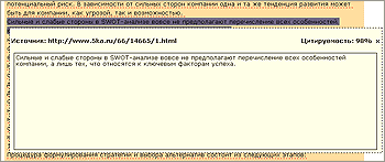 По частично цитированным фрагментам текста можно кликнуть мышью - во всплывающем окне отобразится URL страницы в Интернете источника, а также текст фрагмента из него, с которым было произведено сравнение. Чтобы закрыть всплывающее окно, нажмите «X