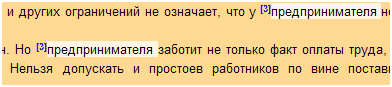 В многоцветном типе отчета цветным фоном выделяются слова, определенные системой как цитированные. При этом каждому источнику цитирования соответствует свой определенный цвет.