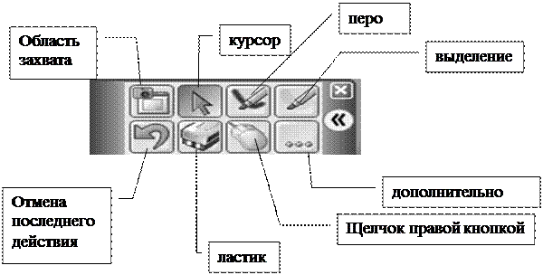 Панель инструментов захвата экрана позволяет вам захватывать изображение отдельного окна, всего экрана либо его части в файл Notebook. Чтобы открыть Панель инструментов захвата экрана нажмите кнопку Захвата
