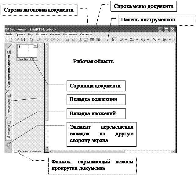 Заметим, кстати, что программу SMART Notebook (как и практически все программы для интерактивной доски) можно установить и использовать на любом компьютере - даже без подключения к нему самой доски (хотя программа это "чувствует" и выдает соответствующие предупреждения). Это позволяет преподавателю подготавливать все необходимые материалы к очередному учебному занятию дома, а затем демонстрировать их студентам в готовом виде, принеся подготовленный файл на преподавательский компьютер, например, на флэш-диске.