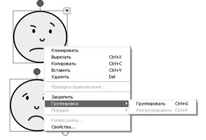 5.2 Нажмите контекстное меню (правая кнопка мыши) на любом из объектов и выберите Группировка> Группировать