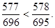 Числитель второй дроби больше числителя первой дроби, то есть 578 > 577.