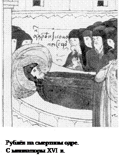 Зима 1430 года оказалась последней, весны он уже не увидел… Темная келья, тишина, снег за слюдяным окошком. Исполнен был неотменный долг покаяния: вспомнить все совершенное против совести, очистить душу. Было прощание с братией. И горела свеча в холодеющей руке, освещала тронутые уже холодным крылом смерти черты. Были последние, перед тем как угаснуть сознанию, прочитанные над ним негромкие и неторопли -вые слова: "Ют всякие узы разреши и от всякие клятвы свободи, остави ему и прости..."