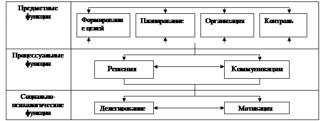 инновационного менеджмента включает основные (предметные) и обеспечивающие функции. Предметные функции – наиболее общие для всех видов и любых условий осуществления инноваций. Они отражают содержание основных стадий процесса управления инновационной деятельностью и выделяют предметные области управленческой деятельности на всех иерархических уровнях. Обеспечивающие функции способствуют эффективному осуществлению предметных функций, включают социально-психологические и технологические, или процессуальные функции менеджмента.