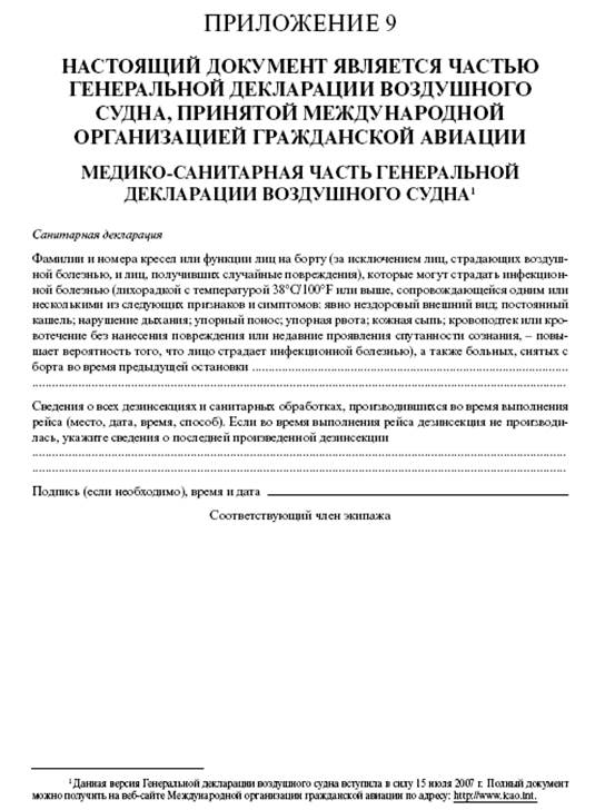 Медико-санитарная часть Генеральной декларации воздушного судна, Приложение 9 к ММСП