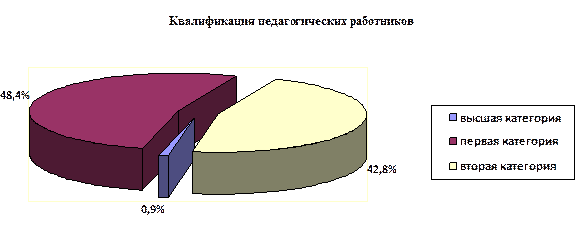 В общеобразовательных учреждениях района 463 педагогических работников имеют квалификационные категории, что составляет 79,1% , из них высшую категорию – 42 чел. (0,9%), первую – 224 чел. (48,4%), вторую – 198 чел. (42,8%). Количество работников имеющих высшую и первую квалификационные категории составляет 57,4 %. Все руководящие работников, имеют квалификационные категории, т.е. 100% . Из них имеют высшую категорию 9 чел. (17,3%), первую – 34 (65,4%).