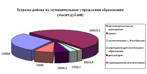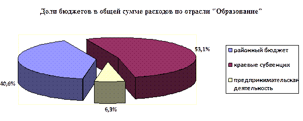 Затраты районного бюджета составили 202 898,3 тыс. рублей (2009 год – 190 031,3 тыс. рублей). За счет краевых субвенций профинансировано расходов на 264992,1 тыс. рублей (2009 год – 261272,5 тыс. руб.). Доля в общей сумме расходов по отрасли « Образование»