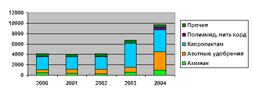 Поставки российским потребителям в 2004 году увеличились на 30% до 2,6 миллиарда рублей. Доля предприятия в общем объеме поставок на рынок РФ составляет: капролактама-35%, полиамида -20%, азотных удобрений-8%.