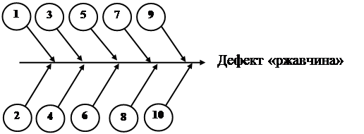 2. Причинно-следственная диаграмма влияния технологических факторов производства проката на вероятность образования дефекта «ржавчина»