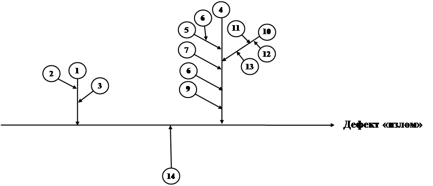 2. Причинно-следственная диаграмма влияния технологии производства проката на вероятность образования дефекта «излом»