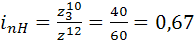 Передаточное отношение цилиндрической передачи привода сбрасывателя: