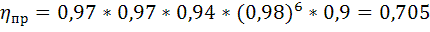 = 0,94 – КПД цилиндрического 2-х ступенчатого редуктора