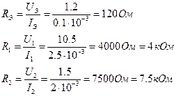 Используя закон Ома, находятся сопротивления резисторов , , , необходимые параметры цепи были посчитаны выше.