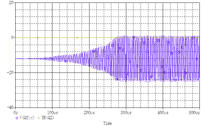 Для проверки работоспособности генератора был использован компьютерный пакет OrCad. При помощи его были получены график напряжения на коллекторе (рис. 5.)