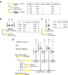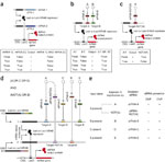 We next fused siRNA targets to the 3'-UTR of the LacI repressor27 driven by the cytomegalovirus (CMV) promoter (Fig. 1d) to evaluate a single-clause CNF expression C1: (D OR E) and a two-clause, two-variable expression C2: (D) AND (E). In the latter expression, each single-variable clause molecule was modified by the triple tandem repeat of the target instead of a single occurrence to improve repression efficiency28. The dsRed-monomer reporter of the truth values in CNF evaluators was under the control of the CAGOP promoter27 (Fig. 2d). The CNF evaluator (Table 1b) performs an AND operation between clauses and an OR operation within a clause; however, currently the CNF evaluator is quantitatively less robust than its DNF counterpart. We expect that tight repression on the one hand, and efficient downregulation by the siRNA on the other, will improve its performance. Apart from increasing the strength of the operator (CAGOP versus CMV-LacO) and fusing tandem repeats, we also tested a stronger repressor LacI-KRAB and thus were able to double the performance of the C1 evaluator (Table 1b). Nonetheless, additional fine-tuning of both the operator and the targets is still needed to improve scalability.