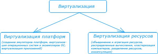 Виртуализация ресурсов, в отличие от виртуализации платформ, имеет более широкий и расплывчатый смысл и представляет собой массу различных подходов, направленных на повышение удобства обращения пользователей с системами в целом. Поэтому, далее мы будем опираться в основном на понятие виртуализации платформ, поскольку технологии, связанные именно с этим понятием, являются в данный момент наиболее динамично развивающимися и эффективными.