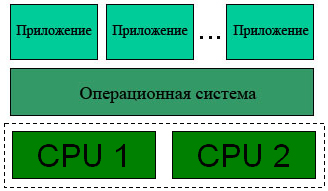 Многозадачность является первым уровнем абстракции приложений. Каждое приложение разделяет ресурсы физического процессора в режиме разделения исполнения кода по времени.