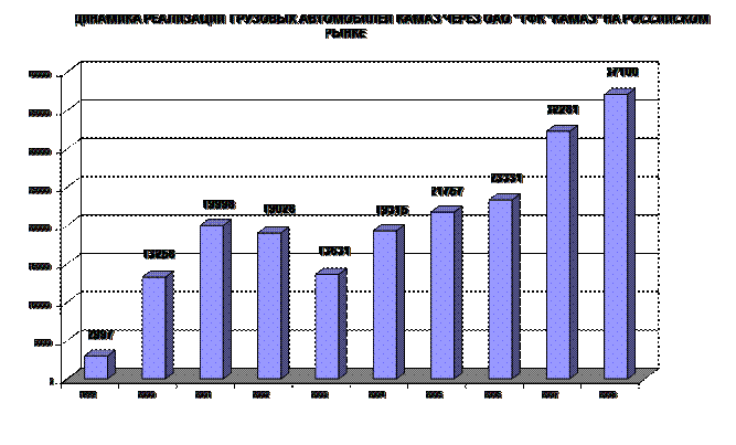 В следующей диаграмме представлена динамика реализации грузовых автомобилей КАМАЗ через ОАО «ТФК «КАМАЗ» на российском рынке, начиная с 1999 года.