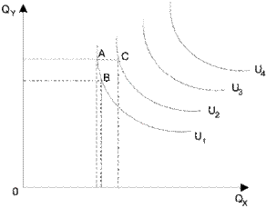 Графически система предпочтений потребителя изображается с помощью кривых безразличия. Это геометрическое место точек, каждая из которых представляет собой такой набор из двух товаров, что потребителю безразлично, какой из этих наборов выбрать. При выборе одного из двух товаров возникает понятие предельной нормы замещения. Предельной нормой замещения благом Х блага Y называют количество блага Y, которое должно быть сокращено при увеличении блага Х на одну единицу так, чтобы уровень удовлетворения потребителя остался неизменным.