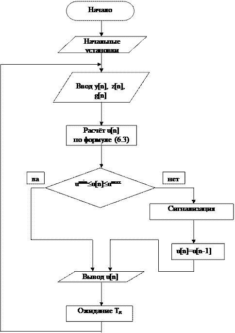 Алгоритм непосредственного цифрового регулирования (рис.6.2), кроме расчёта управляющего воздействия, выполняет следующие дополнительные функции: