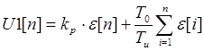 U1[n]=U1[n-1]+2,35× (g[n]-y[n])-2,3×( g[n]-y[n-1])