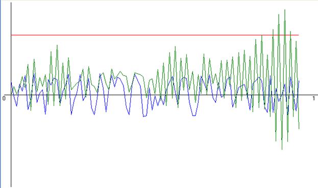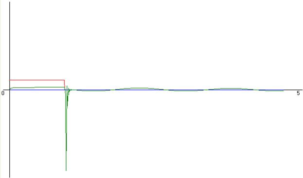 График: на входе ступенька (1), помехи (0,00), t=1c