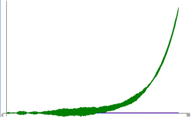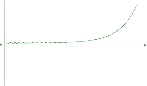График: на входе ступенька (1), помехи (0,00), t=50c
