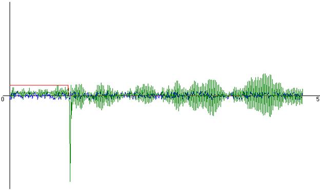 График: на входе прямоугольный импульс (высота 1, длительность 1), помехи (0,00), t=5c