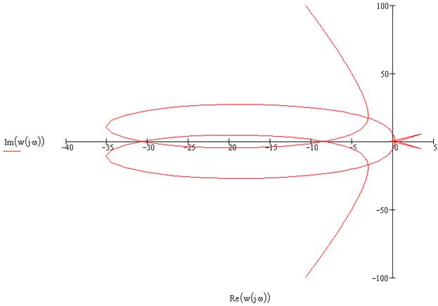 Необходимым условием устойчивости системы любого порядка является положительность всех коэффициентов характеристического уравнения. Данное уравнение противоречит этому условию, т.к. в нем есть отрицательные коэффициенты, не зависящие от K, поэтому система будет неустойчивой при любых значениях К. Поэтому дальнейший анализ устойчивости не имеет смысла.
