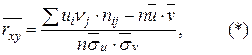 Формула для вычисления эмпирического коэффициента корреляции в условных вариантах имеет вид:
