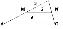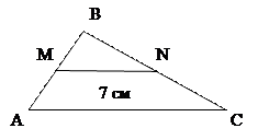 является средней линией. По данным, приведенным на рисунке, определите длину средней линии треугольника.