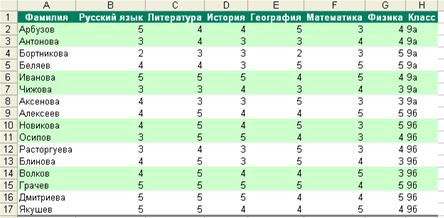 1. Для всех «общеобразовательных» классов одной параллели отводится одна (общая) колонка, а каждый «специализированный» класс представлен отдельной колонкой.