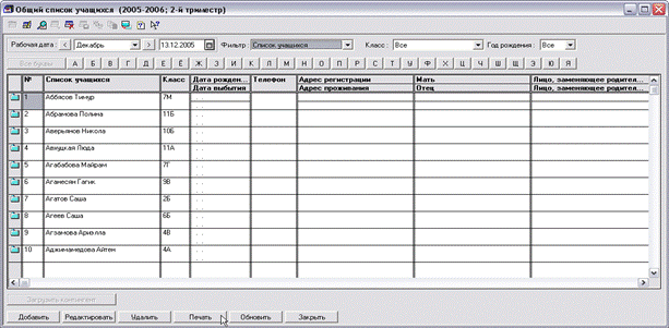 общий список учащихся.