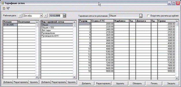 · тарифных сеток - в обработке «Тарифные сетки»;