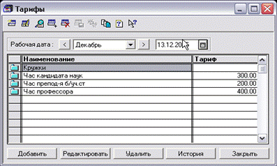 · почасовых тарифов - в справочнике «Тарифы»;