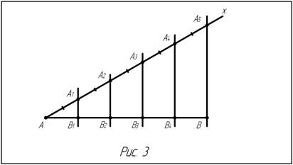 (рис.3), т.е. столько равных отрезков, на сколько равных частей нужно разделить данный отрезок АВ (на рис. 3 n=5). Проведем прямую Аn