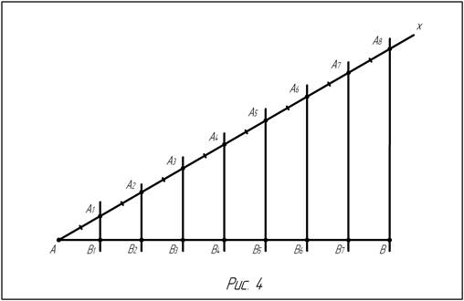 (рис.3), т.е. столько равных отрезков, на сколько равных частей нужно разделить данный отрезок АВ (рис. 4). Проведем прямую А8