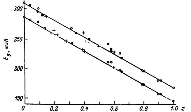 .Как видно из рисунка, зависимость ширины запрещенной зоны от состава в некоторых системах твердых растворов (Gaу