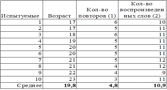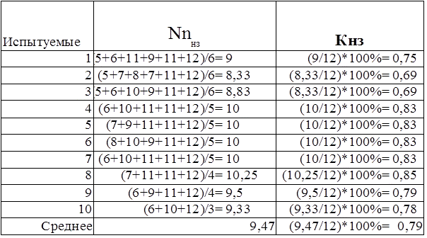 Таким образом, средний показатель продуктивности непосредственного запоминания испытуемых равен 9,47.