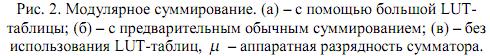 Малоразрядность обрабатываемых остатков позволяет для повышения быстродействия арифметических операций в вычислительных каналах применять методы табличной подстановки (LUT). Более подробно модулярная арифметика в вычислительных каналах будет рассмотрена ниже, а пока же