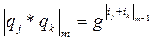 Это свойство полей Галуа можно использовать для умножения в GF(m ) благодаря использованию изоморфизма между мультипликативной по модулю m группой Q = {1, 2,…, m -1}, и аддитивной по модулю (m - 1) группой I = {0, 1,…, m - 2}. Этот изоморфизм может быть установлен следующим образом: : (13) и умножение над полем GF(m) может производиться по формуле: (14). Таким образом, умножение двух чисел q и q можно производить, вычисляя модулярную сумму соответствующих указателей i и i а затем проводя обратное преобразование из степенного пространства в исходный вид. Необходимо специально