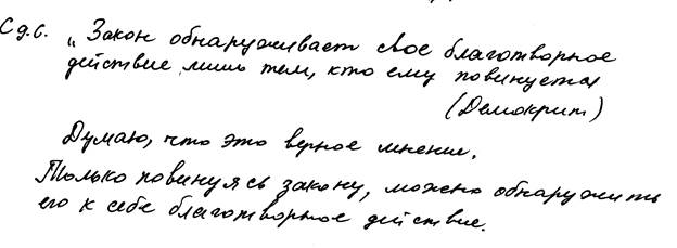 Смысл высказывания раскрыт частично. Нет ясности по вопросу о том, что имеет в виду философ, говоря о «нужных им всем законах» (нужные только тем слоям, которые представляет партия?).