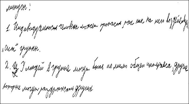 1) малая группа не является просто суммой отдельно взятых индивидов, она живет и развивается по своим законам, которые необходимо знать для правильного понимания социальных процессов.