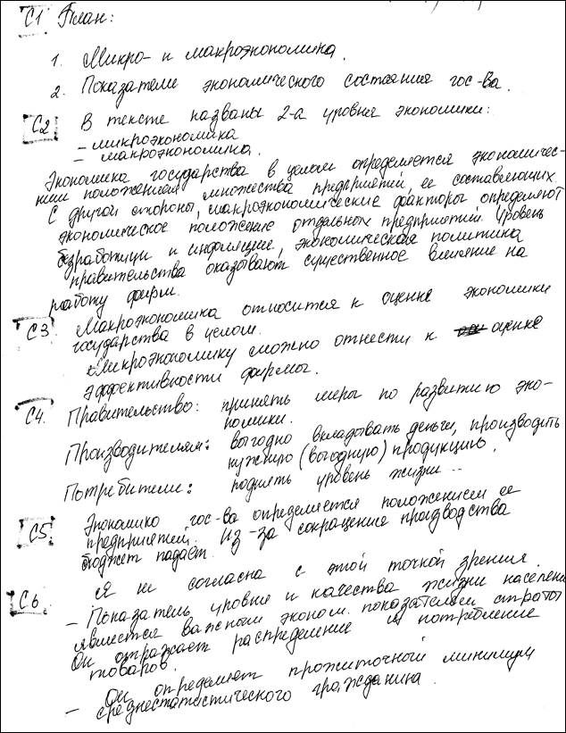 Так в любом варианте КИМ задание С1, предполагающее составление плана текста, будет оцениваться по общим критериям, отражающим полноту, четкость, логическую последовательность отражения содержания в пунктах плана.