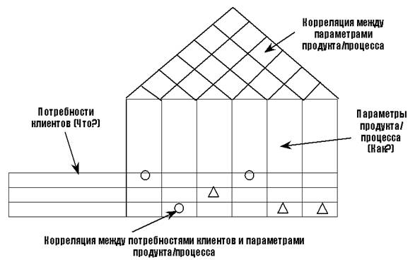Рассматриваемая технология построения матрицы — дома качества — позволяет оценить интегральный показатель степени важности параметров процесса/продукта со стороны их влияния на уровень удовлетворения потребностей клиентов. Интегральный показатель степени важности параметров процесса/продукта определяется посредством корректировки значения степени важности для клиента выделенных критериев качества услуги/продукта на коэффициент корреляции.