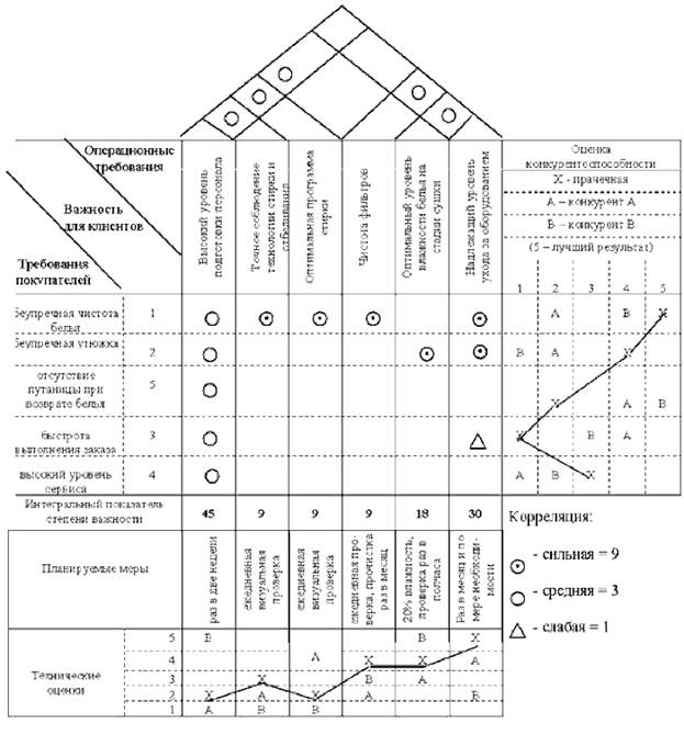 На рис. 2 представлен пример построения матрицы — дома качества — для прачечной [5].