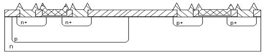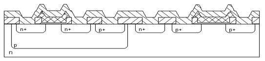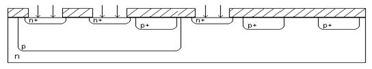 В изготовлении КМОП-схем применяются технологии самосовмещенного кремниевого затвора и ионного внедрения. Технология самосовмещенного кремниевого затвора подразумевает, что на общей подложек формируются транзисторы с каналами р-типа и n-типа.