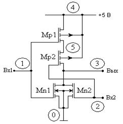 В данной курсовой работе была спроектирована схема логического элемента ИЛИ-НЕ на комплементарных МОП-транзисторах. Промышленный аналог данного элемента К564ЛЕ5. Спроектированная схема обладает лучшей помехозащищенностью, но способна работать на меньшей частоте.