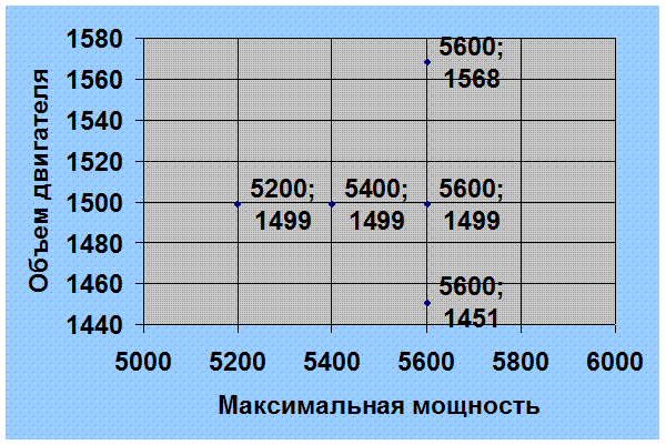 Вывод: следуя из диаграммы мы видим, что объем двигателя моего автомобиля ниже объема двигателей у конкурентов.