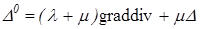 Колебания упругой среды (в перемещениях) описываются уравнениями Ляме: